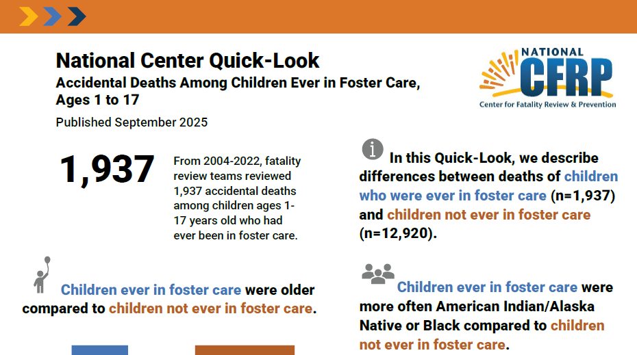 This Quick-Look looks at the data comparing differences in deaths from children in foster care to those not in foster care.